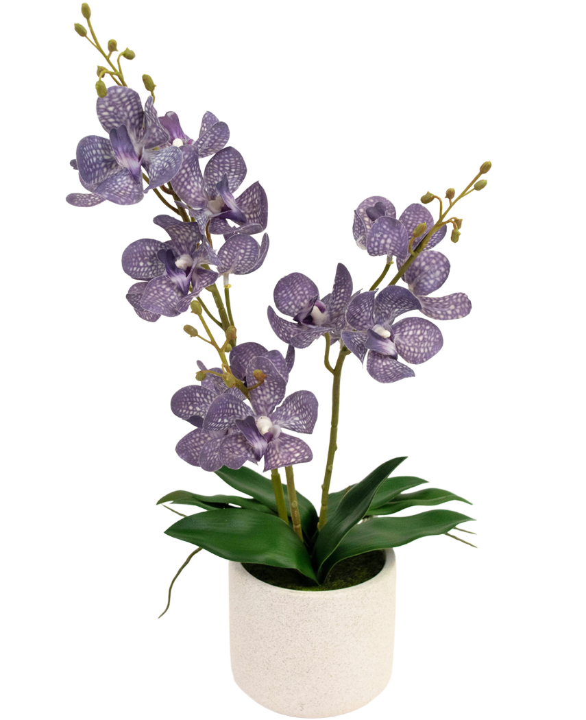 Erleben Sie die Schönheit der Natur mit unserer künstlichen Ascocenda in strahlendem Lila. Mit einer Höhe von 50 cm ist diese exquisite Blumenkreation die ideale Wahl für alle, die einen Hauch von Eleganz und Farbe in ihre Umgebung bringen möchten, ohne sich um die Pflege lebender Pflanzen kümmern zu müssen.