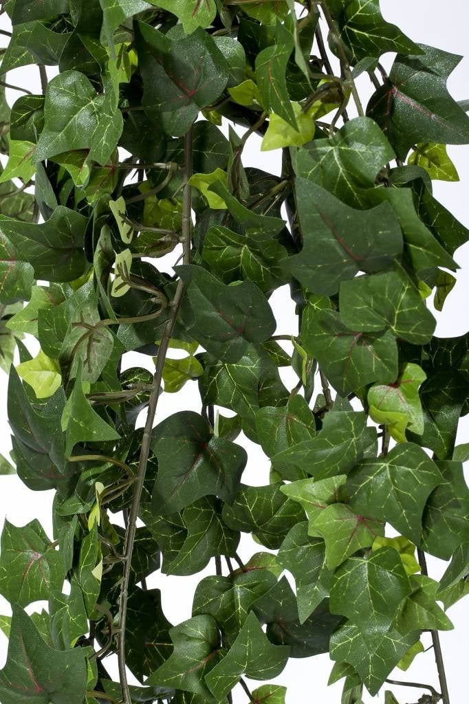 Bringen Sie Gemütlichkeit und Eleganz in Ihre Räumlichkeiten mit der beeindruckenden künstlichen Efeu-Hängepflanze. Mit einer Länge von 125 cm und zahlreichen Strängen von Blättern ist diese Pflanze der ideale Weg, um Atmosphäre zu schaffen – sei es in einem Restaurant, einem Geschäft oder in Ihrem eigenen Wohnzimmer.