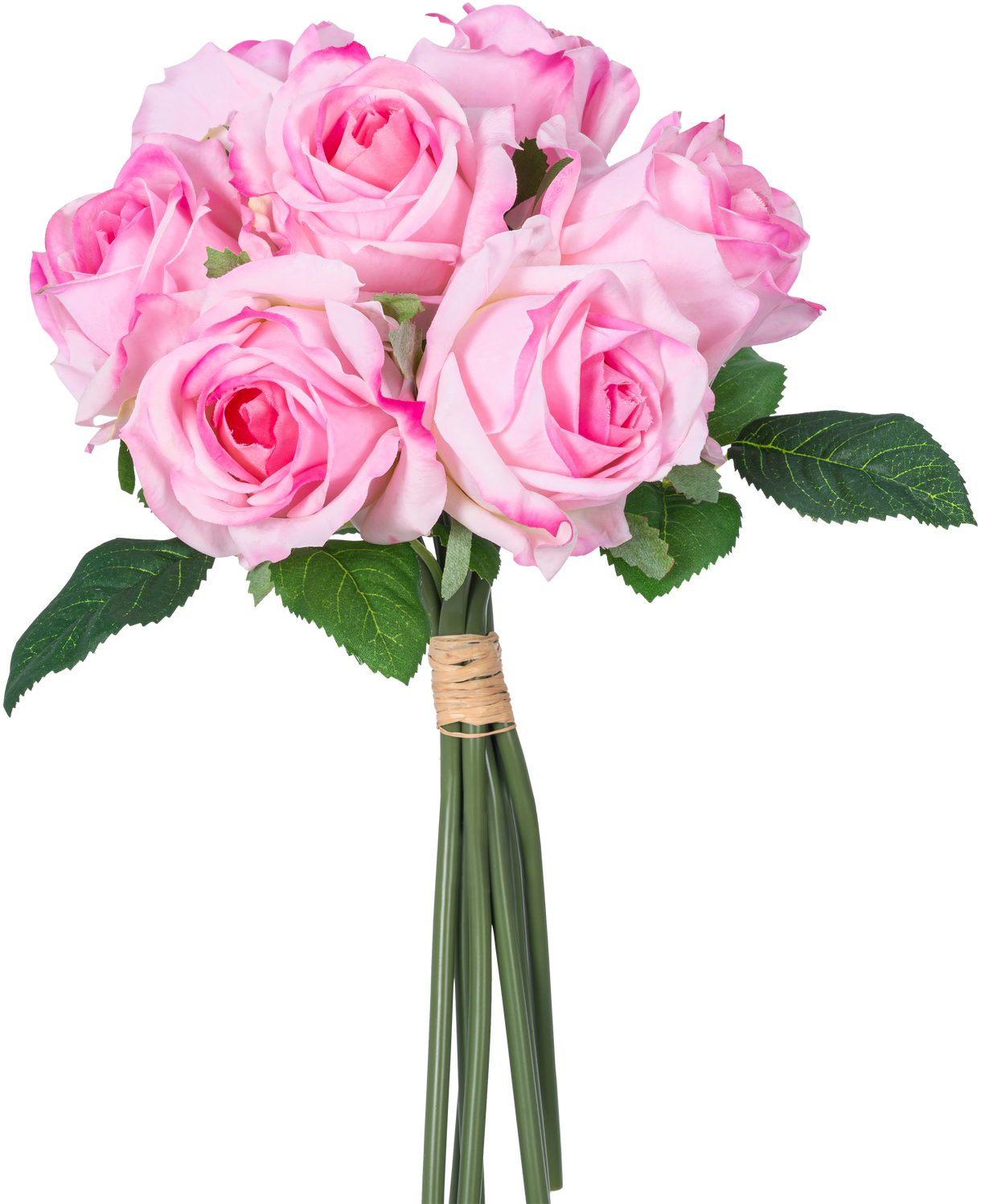 Künstlicher Rosenstrauß 7 Rosen Real Touch Pink 30 cm